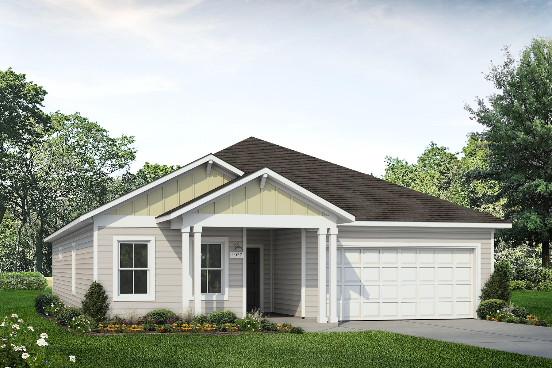 This single-story layout brings together practical storage and inviting living spaces. The kitchen island and large pantry support effortless cooking and daily connection, while the oversized primary closet offers everyday convenience. A flex room provides space to shape to your needs—study, play, fitness, or retreat. Quality construction and durable materials are designed for everything you need today and tomorow.