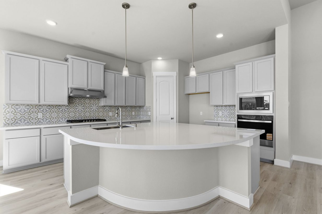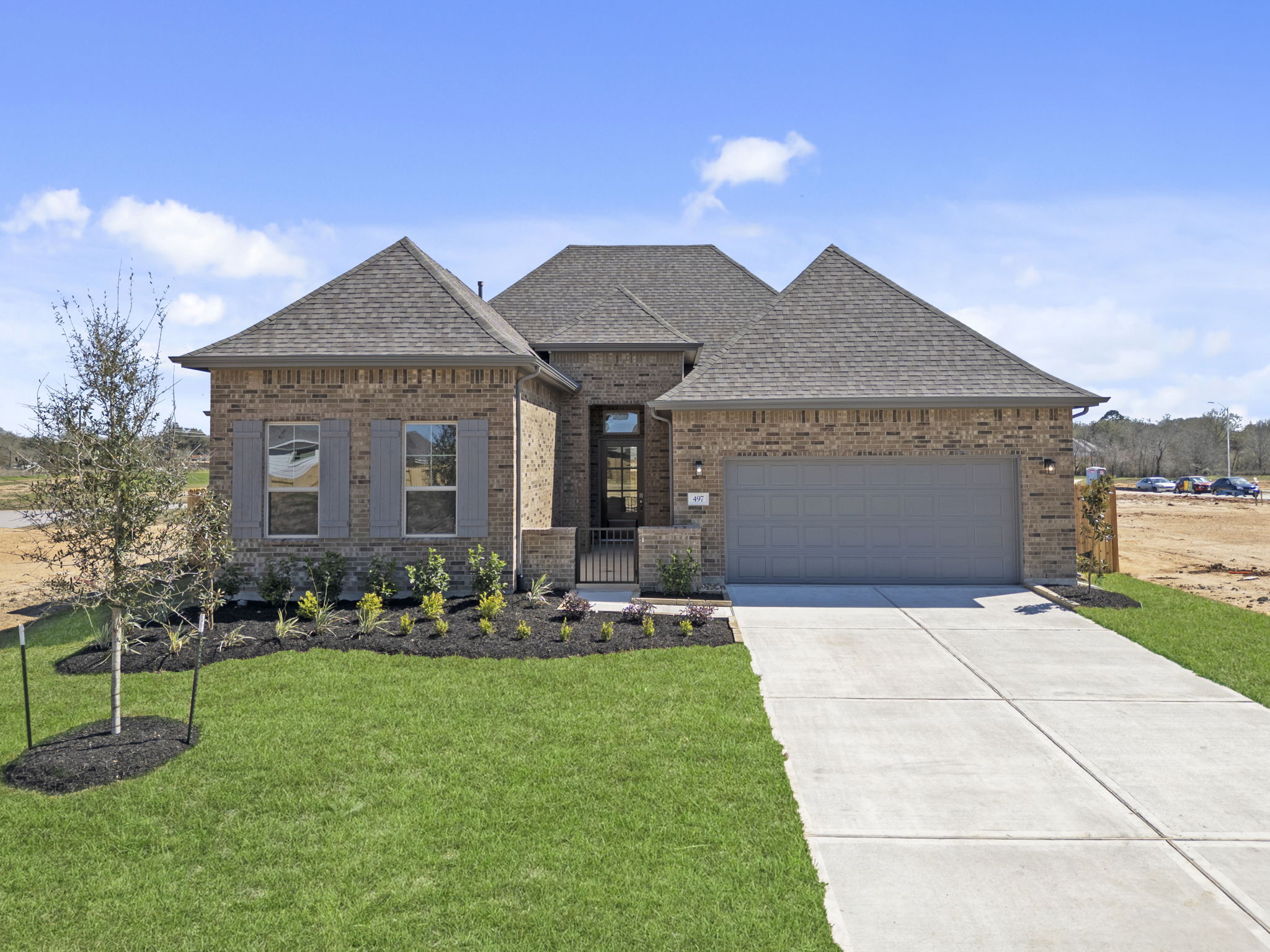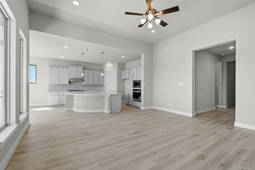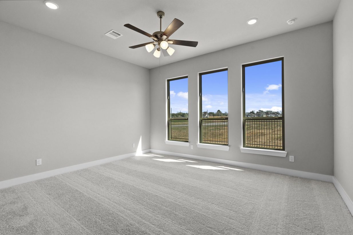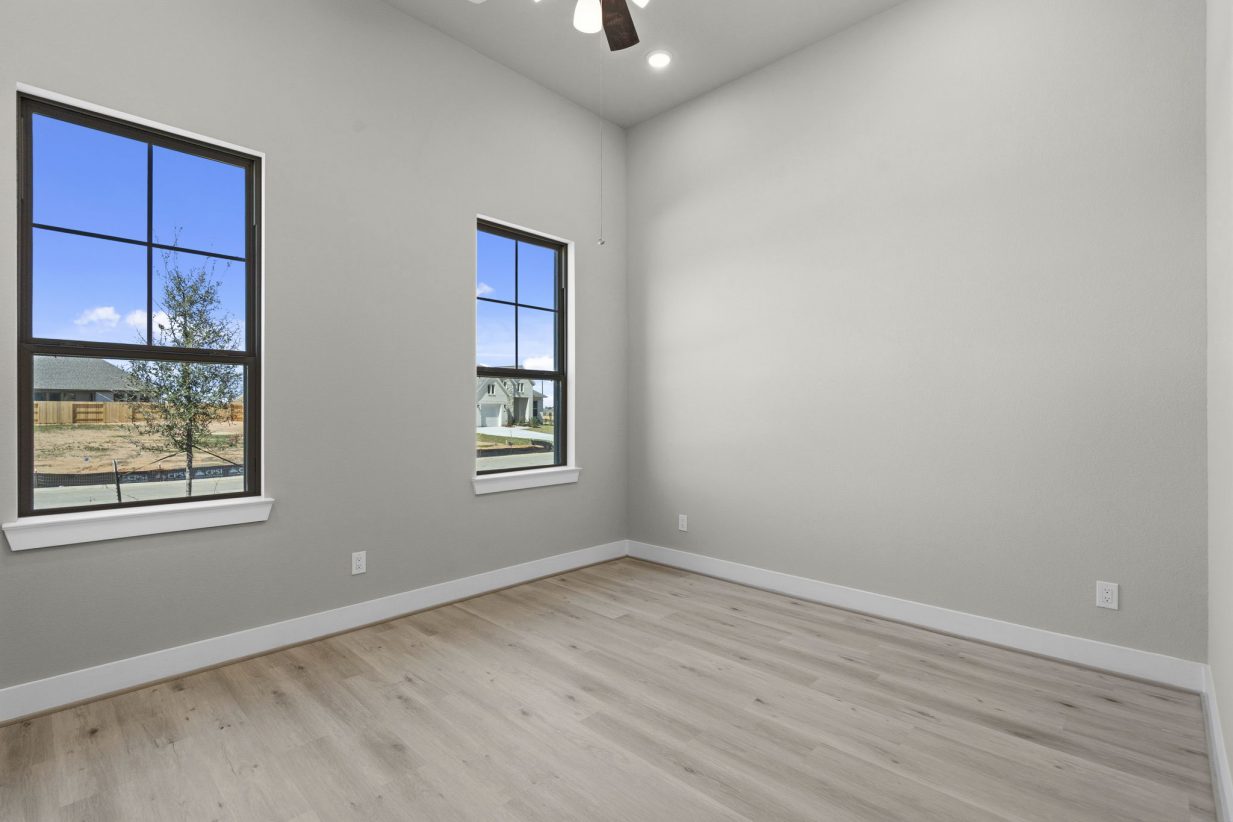 The Caprock by Brohn Homes is a brand-new floor plan and offers comfort, space, and style. Step through the wide foyer into your new home. An offset study provides privacy – perfect for working from home. The family room impresses with high ceilings and natural light pouring through a wall of windows. The open-concept kitchen is a chef’s dream, featuring a unique curved island and charming casual dining. The secluded primary suite offers relaxation with a separate tub and shower, dual sinks, and a spacious walk-in closet. Three generous secondary bedrooms provide privacy and flexibility. Unwind or entertain in your media room.